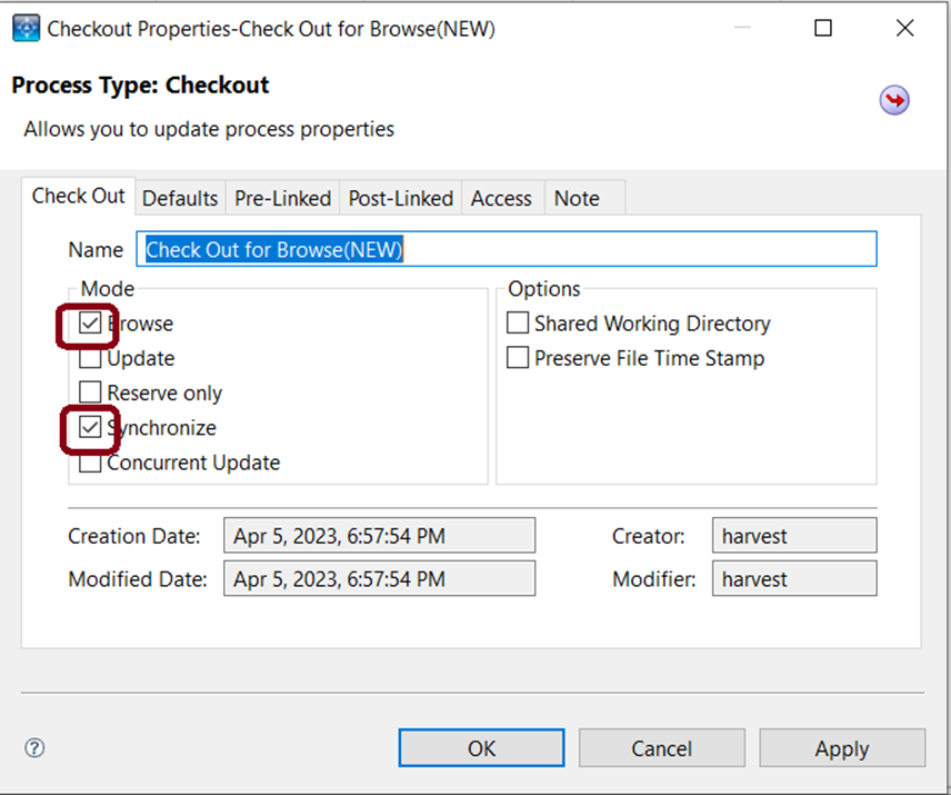 7. The process 'Check out for Browse' looks like below