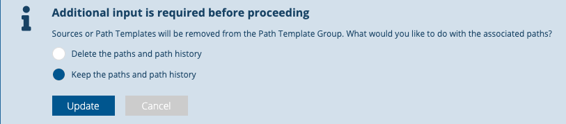 When Using Path Template Groups, you can remove individual paths, individual monitoring points, or the Path Template Group itself. When you do so, you are prompted: