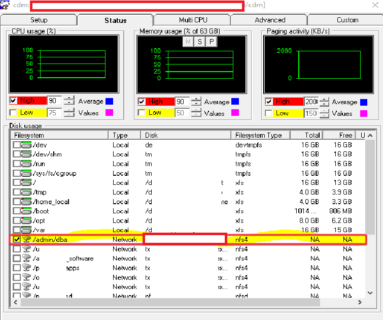 I have DX UIM 20.3.3 and CDM 6.60 installed on the target Linux system. I can see the file system showed up with network, nfs4 filesystem type, but there is NA for Total and Free disk space in there.