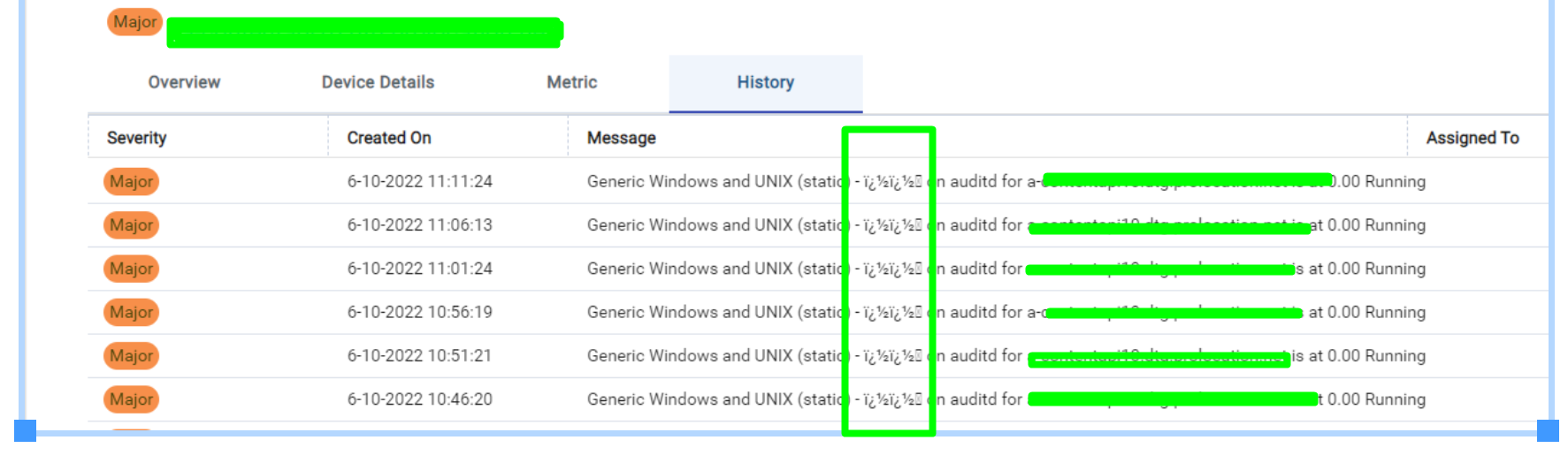Sometimes robots create alarms that contain strange characters. See the pictures below for examples.