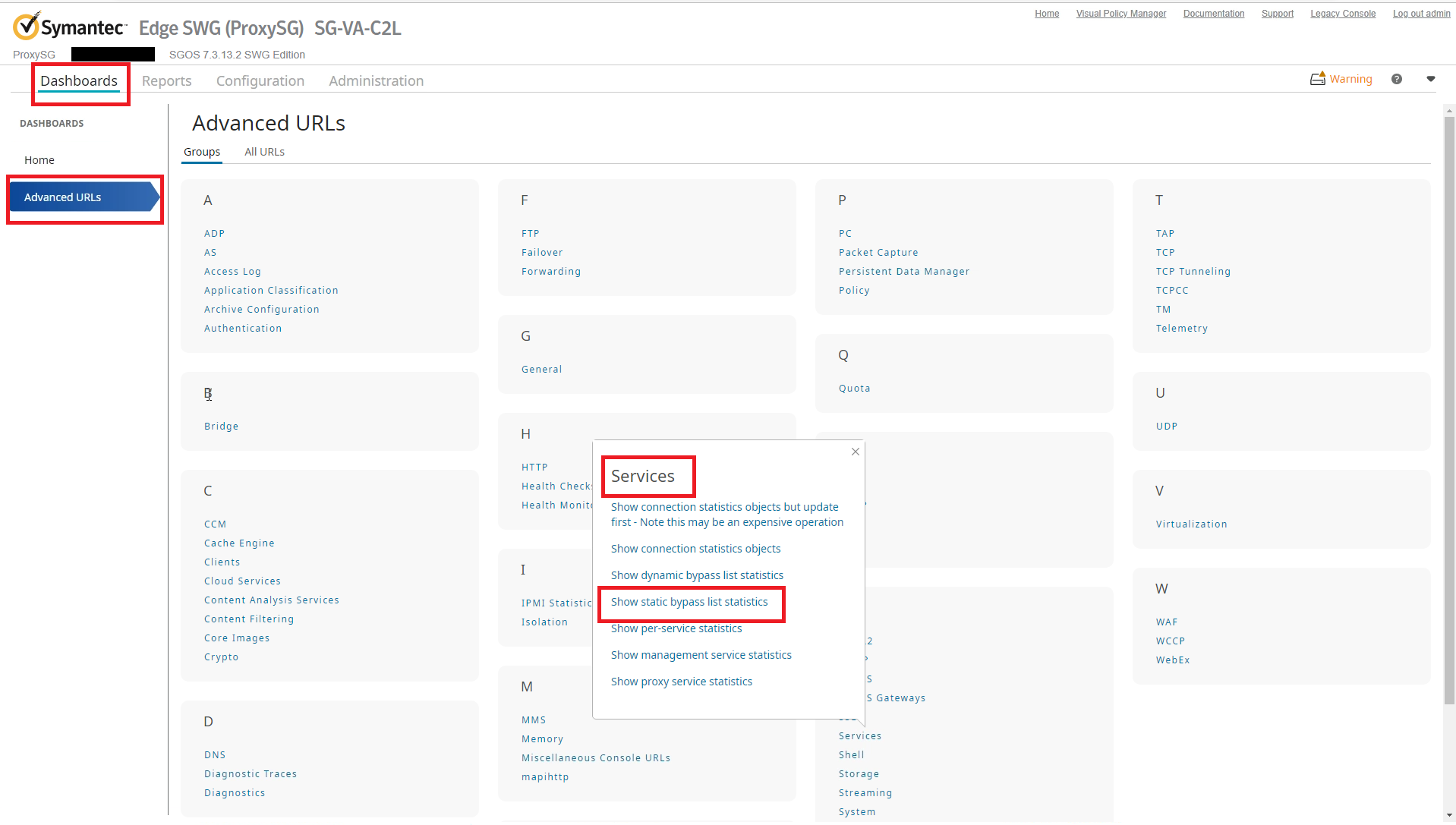 Note: In versions earlier than SGOS/ASG 7.3.12.1, access the Admin Console through Symantec Management Center.