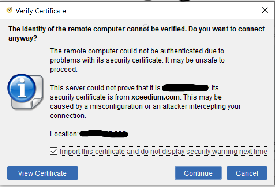 To fix this, you only have to import and accept the xceedium certificate.