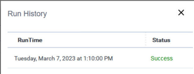 I have a report that's scheduled to execute once a day. The most recent run result is:
