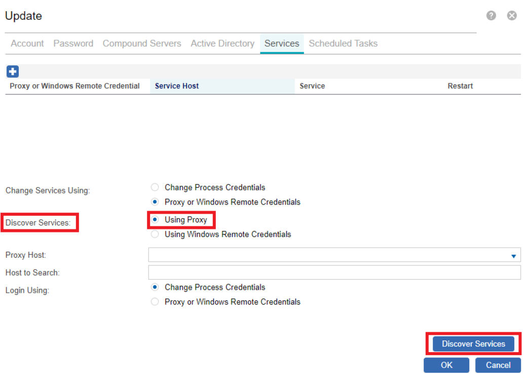 We are unable to discover services on a remote Windows host. In the target account we have a Windows Proxy configured to do service discovery: