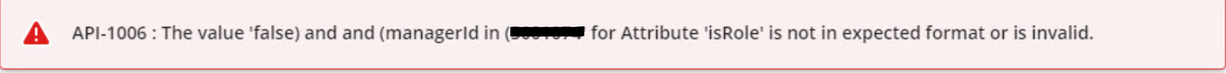 Receiving error "API-1006: The value 'false)and and (xxx managerId in (for Attribute 'isRole' is not in expected format or is invalid." when trying to change Staffing Plan from Monthly to Weekly in Settings.