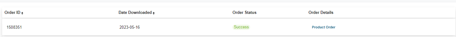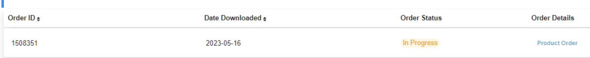 Once the order has completed, the following is shown under Order History by clicking the down order to the right of the 'bell' symbol.