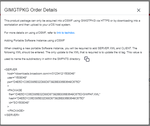 This may then be copied to the clipboard and the installation may proceed now under z/OSMF with the ACQUIRE portion of the installation.