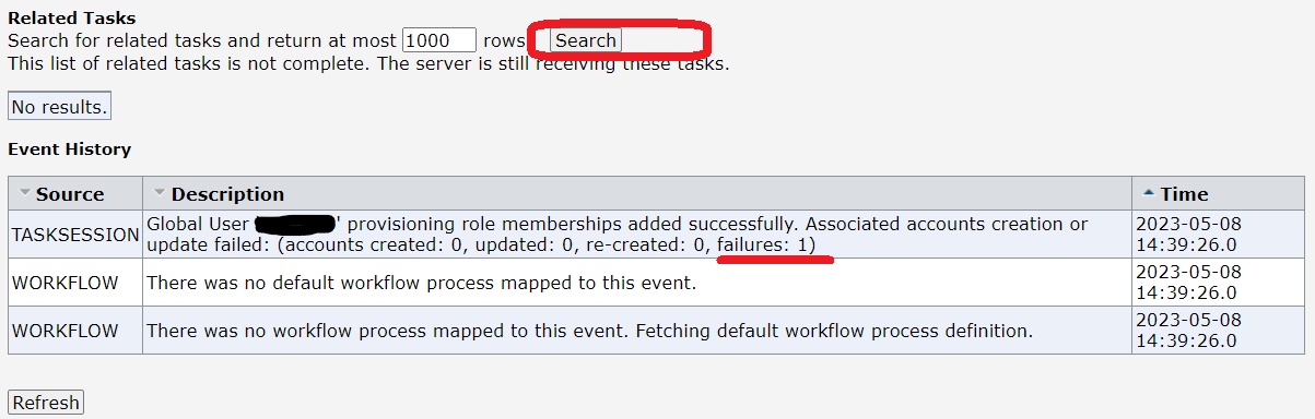 When trying to see the Cause of a failure in the View Submitted Tasks we see the message "This list of related tasks is not complete. The server is still receiving these tasks"