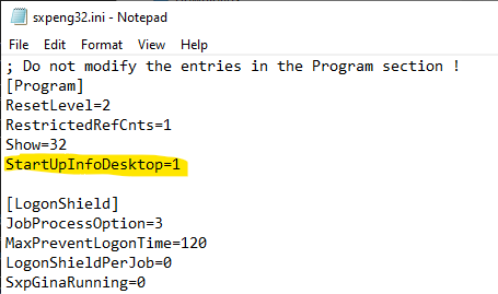 StartUpInfoDesktop=0 means no windows appear on user desktop