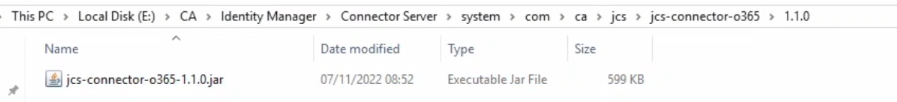 Need to unzip jar <installation directory of Copnnector server>/system/com/ca/jcs/jcs-connector-o365/1.1.0/jcs-connector-o365-1.1.0.jar using zip program.
