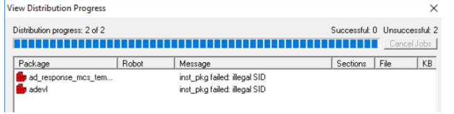 This allowed the packages to be deployed but this was a Linux machine so the adevl and ad_response/ad_server or template packages would deploy but not display (but this is expected as the OS turned out to be Linux).