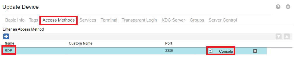 Uncheck the Console checkbox for the RDP access method in the device editor.