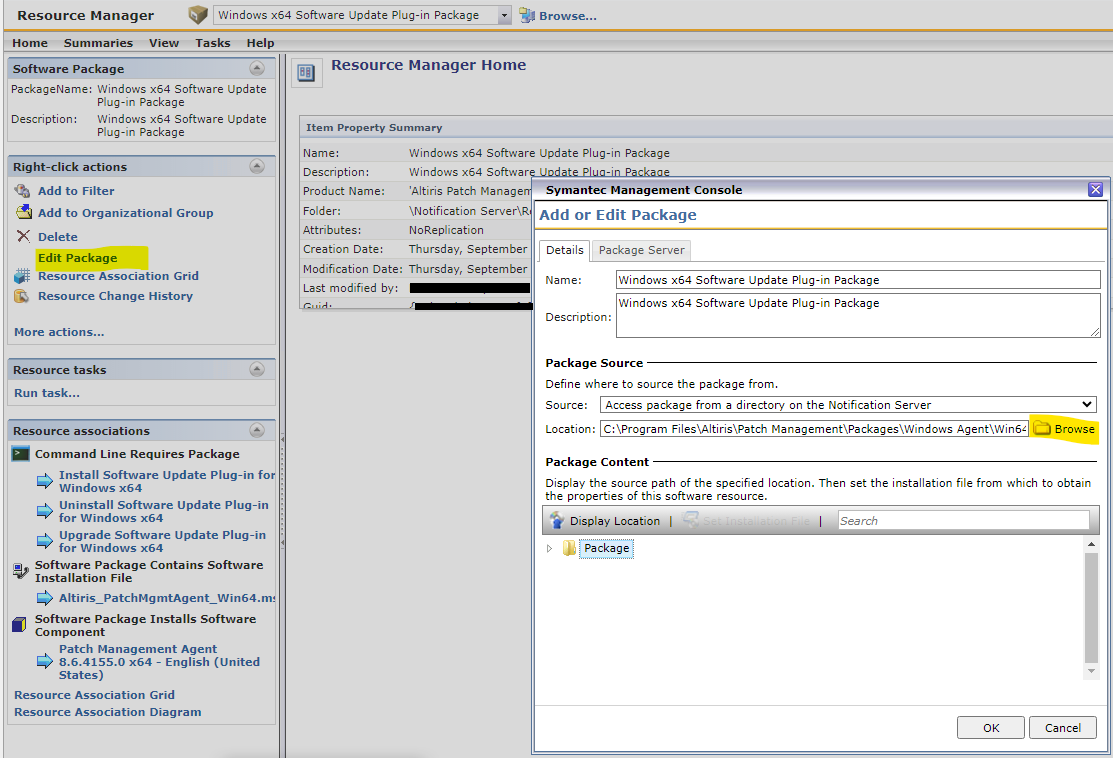 You may see a similar error as well when trying to edit a package (verifying the current package path) under Manage>All Resources>Package: