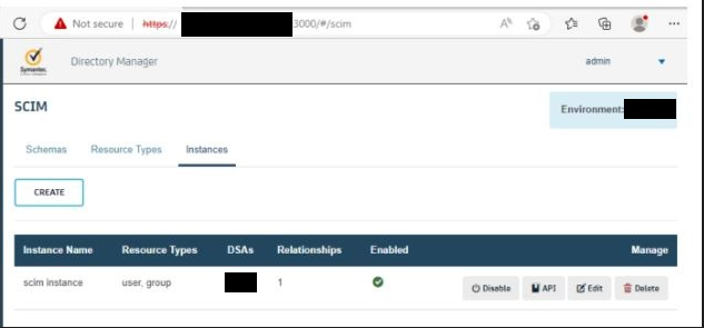 During SCIM configuration, when you click on 'API' button after successfully creating an instance, it fails with following error.