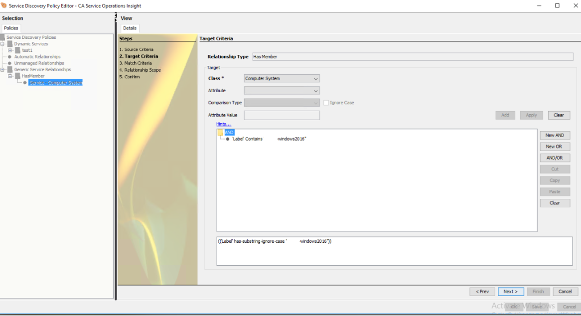'Service.Service Name' contains (ignore case) 'Computer System.Label'