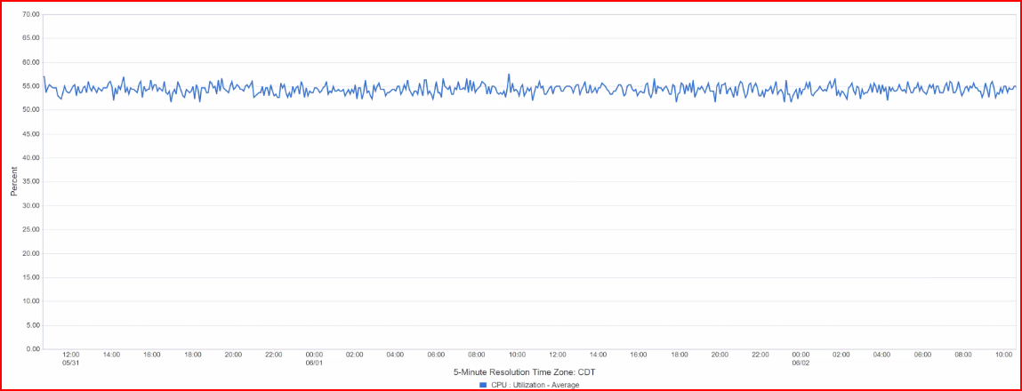 But, the average CPU utilization during the time frame did not go above 70%. We are wanting to alert on average utilization by device, is there something set up incorrectly here?