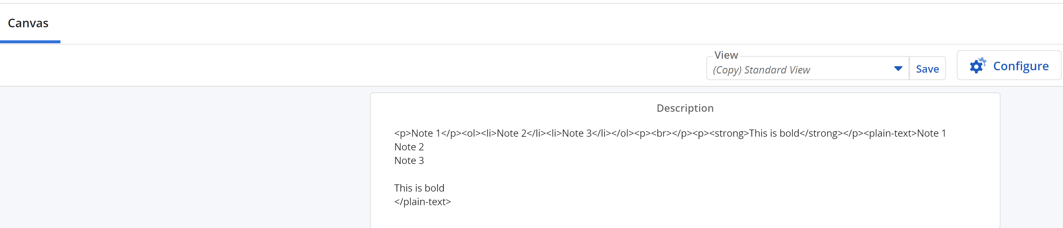 Description section in the canvas adds extra HTML characters.