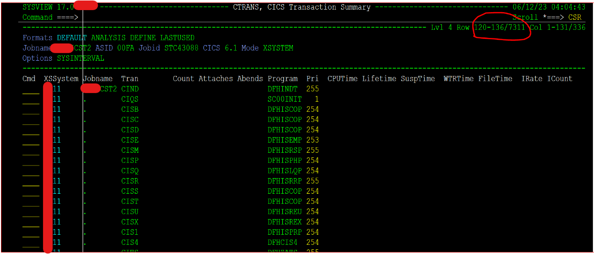 Most CICS-related cmd screens in SYSVEIW require selecting a region before showing some data. The XSCMD cmd will show what cmds are able to show cross-system data. Users can Enable or Disable it right from that screen by typing YES or NO under the 'Data' column that corresponds to the cmd screen. For example, the CTRANS cmd screen from all system that has a connection to current SYSVIEW instance. First go to XSCMD screen locate CTRANS and set YES under the 'Data' column like in the screenshot below.