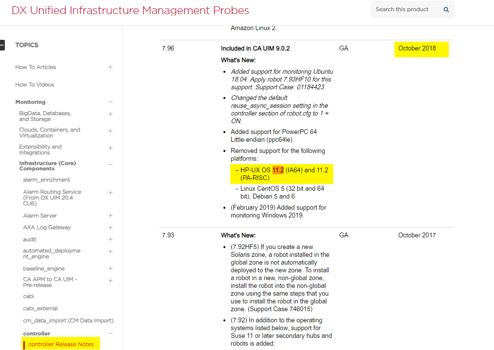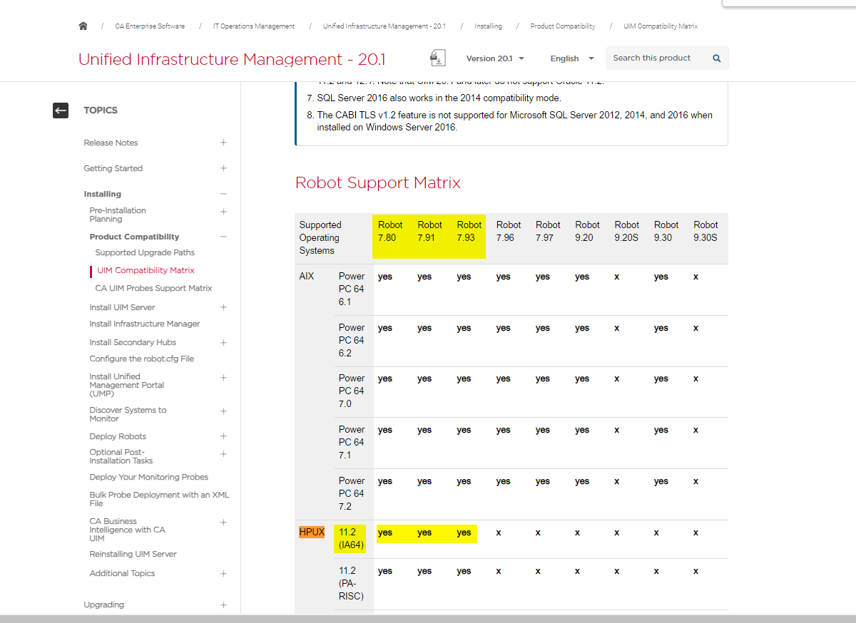 robot package for HPUX 11.2x (IA64) is considered Legacy and only supports robot versions 7.80, 7.91 and 7.93 in DX UIM v20.1.