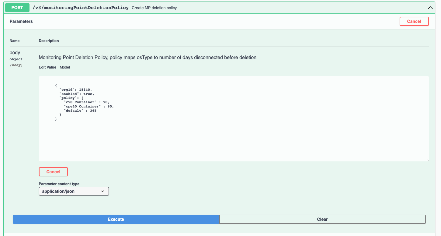 2. Next, you can Navigate the the monitoringPointDeletionPolicy endpoint: