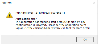 The application has failed to start because its side-by-side configuration is incorrect. Please see the application event log or use the command-line sxstrace.exe tool for more detail.