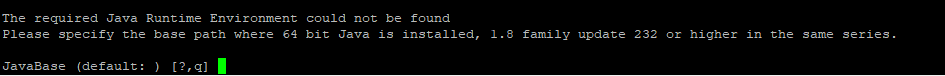 Error: The required Java Runtime Environment could not be found. Please specify the base path where 64 bit Java is installed, 1.8 family updated 232 or higher in the series.