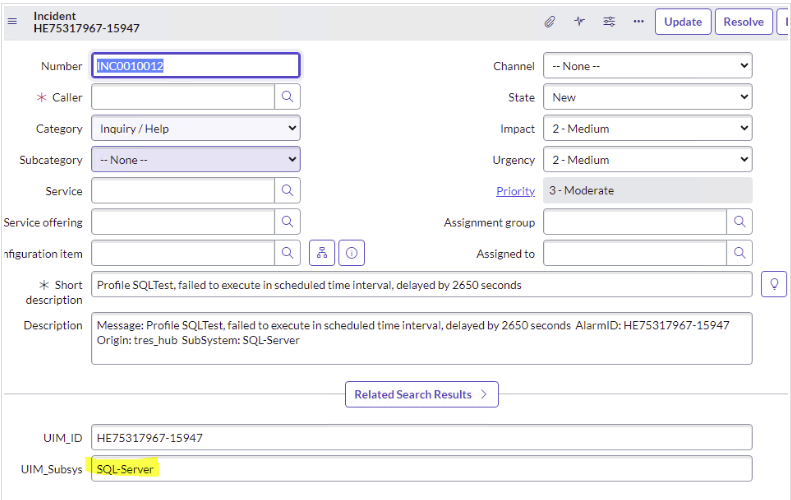 In the example below, we want to see SQL-Server when the incident is created in ServiceNow.