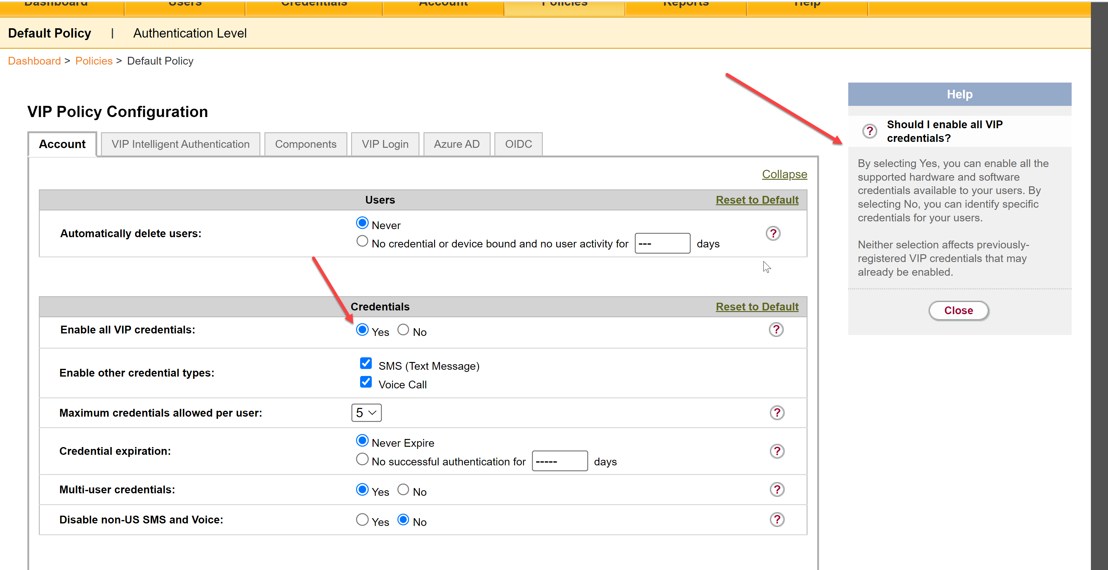 Unable to use Symantec VIP desktop app during testing. When Yes is selected on the “Enable all VIP credentials”, those are not seen. When No is selected on the “Enable all VIP credentials”, the check box is seen.