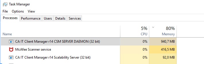 After few days, when most of computers have received the new configuration policy, memory usage of process ccsmsvrd.exe should be low again.