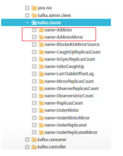 kafka.cluster:type=Partition,name=AtMinIsr* (match if name starts with AtMinIsr)