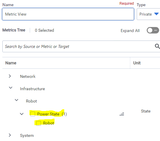 10. Waited a few poll cycles and confirm if device displays the Power State metric for the Robot