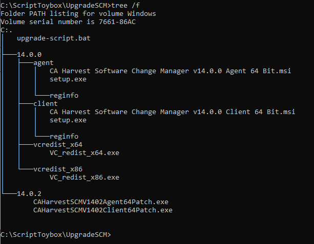 Copy the attached upgrade-script_bat.txt file into the structure and rename the file to upgrade-script.bat