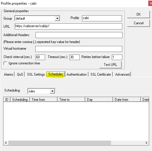 We have various active url_response profiles and have the need to set one profile with a Schedule so that it is not active for a set of days.