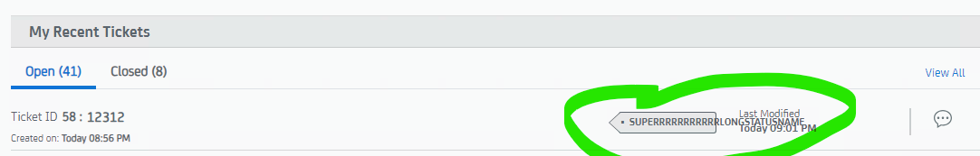 2. When the status (sym) of a ticket is long (> 28 characters), the status text covers the last modified date. This occurs in the SP homepage under My Recent Tickets / Open and Closed and also under My Tickets.
