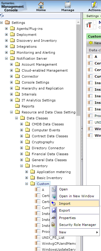 4. Download the attached "Custom inventory PS tasks to get installed certificates info.xml" and the right-click on the required folder and import it: