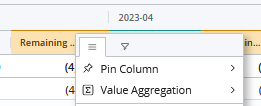 Screenshot of the Totals: Remaining Availabilty Hamburger icon