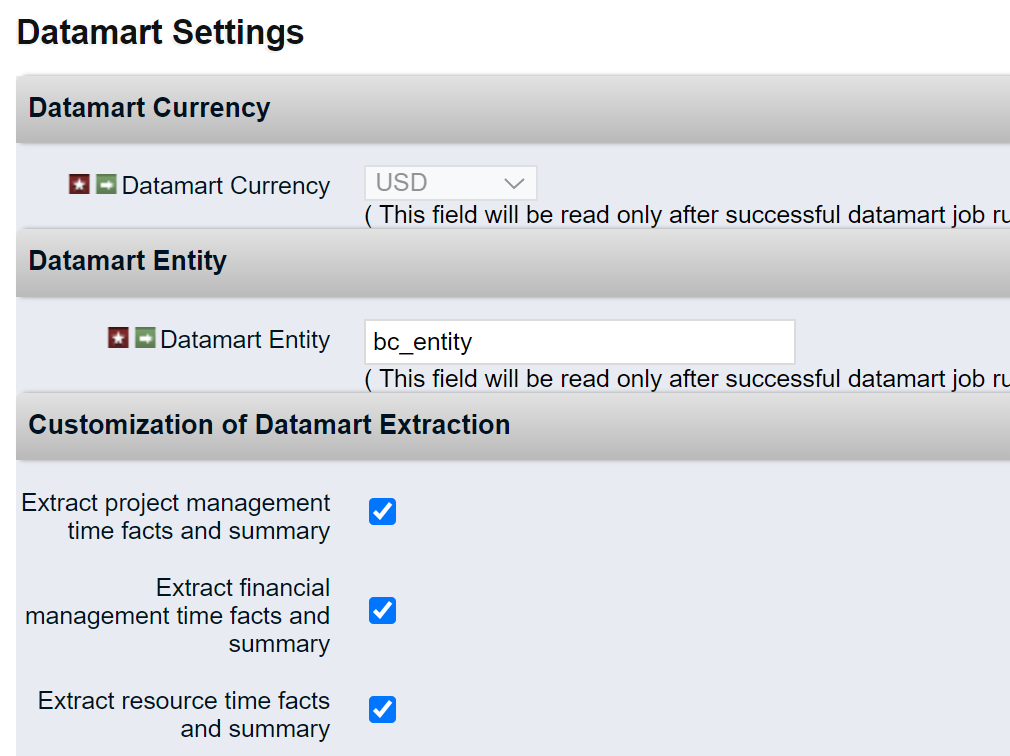 The job populates the data in the FINANCIAL Management Time Facts and Time Summary tables. The program retrieves the data from the NBI_PROJECT_CURRENT_FACTS table (populated by the Datamart Extraction job) for the CURRENT Fiscal (monthly) period ONLY. If the Datamart Rollup job is successful, consistently, you can build historical Financial Management rollup data for use in user-defined reports and portlets.