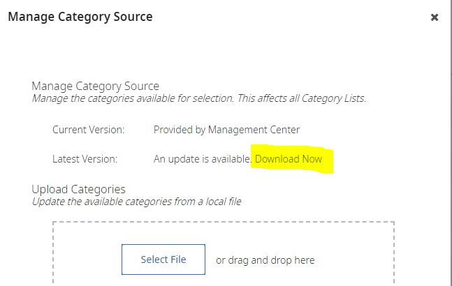 Once downloaded, MC will have the latest categories. Make sure that the Management Center is connected to the internet in order to get the data.
