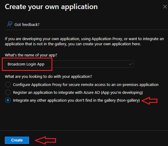 1. Create a SSO object for "Broadcom Login" in your Corporate Azure Enterprise Apps