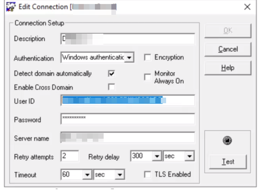 sqlserver probe crash is observed when "Detect Domain automatically " is enabled previously and the connection goes down on the monitored sql database or returns incorrect results after the connection is tested.
