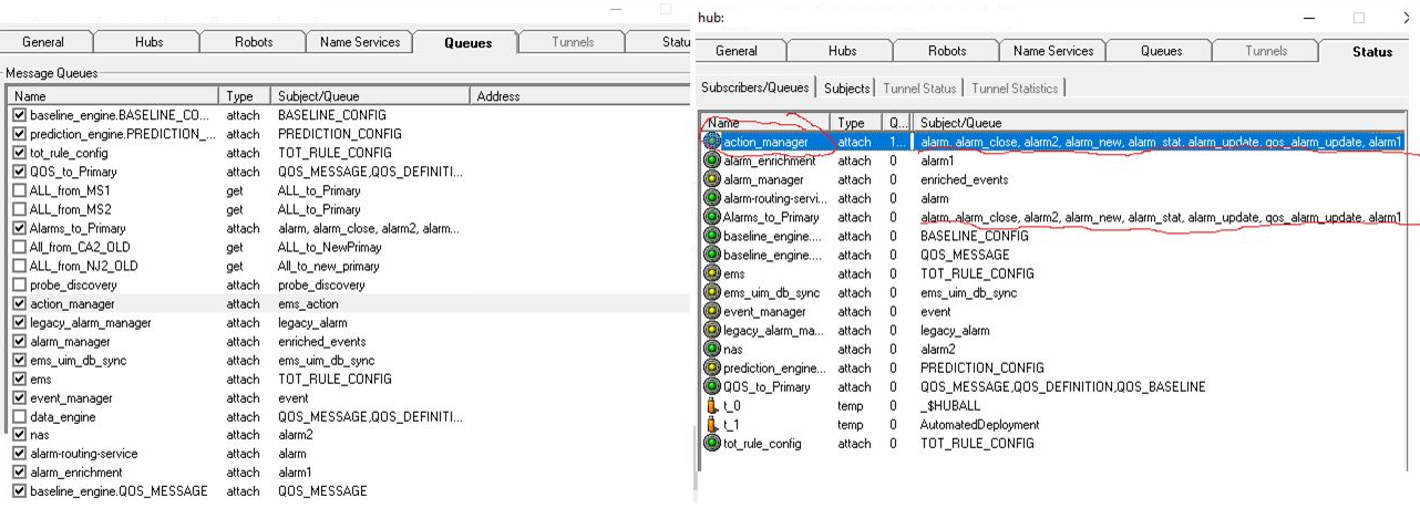 The action_manager queue on the secondary HA hub is filling up. It appears that queue's subjects already exist in Alarms_to_Primary queue and that queue is working fine. Are these duplicate queues? Would it be ok to remove the action_manager queue from the secondary?