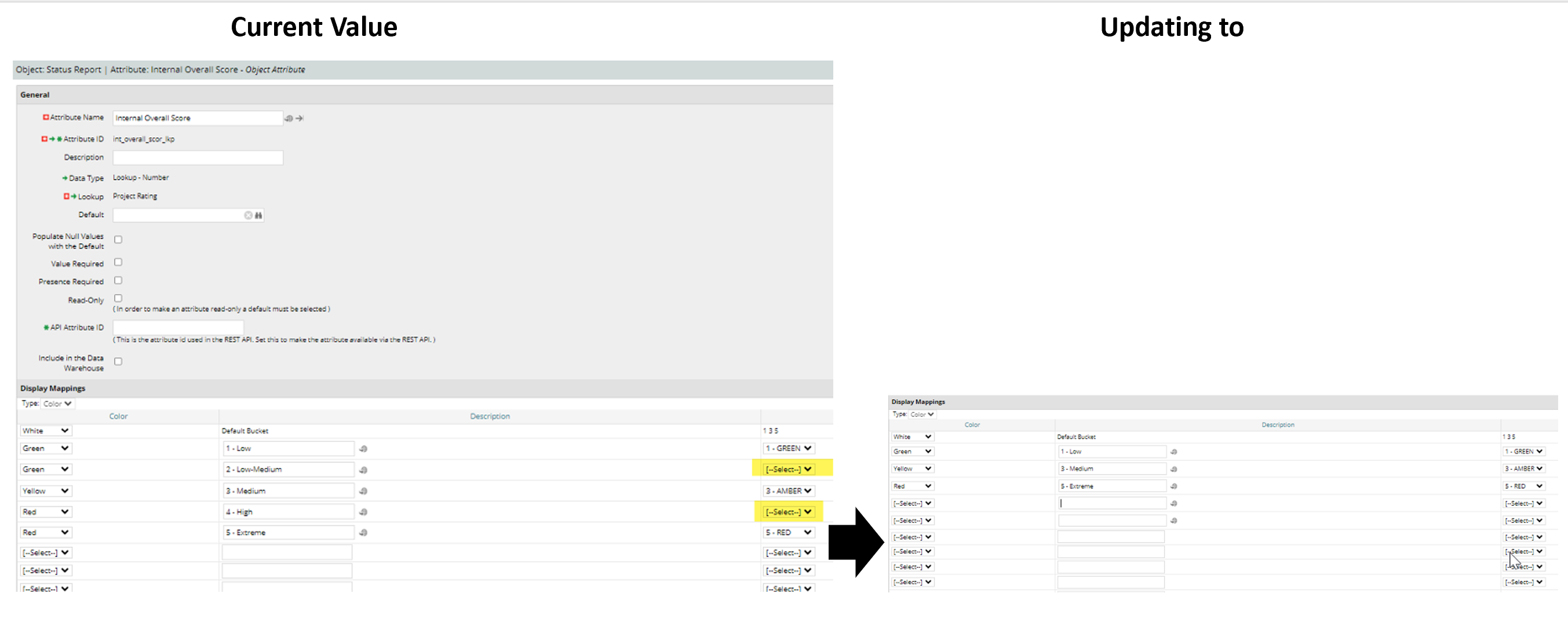 Example from PROD: Admin > Object > Status Report > Attributes > Internal Overall Score: attempting to update as per below, resulting in error