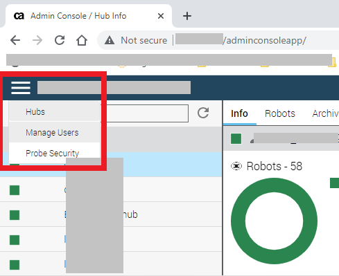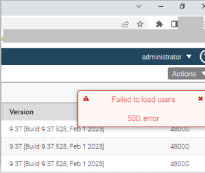 When trying to open the Manage Users and Probe Security pages from the SHOW MENU of the Administrator Console, we got the error message :