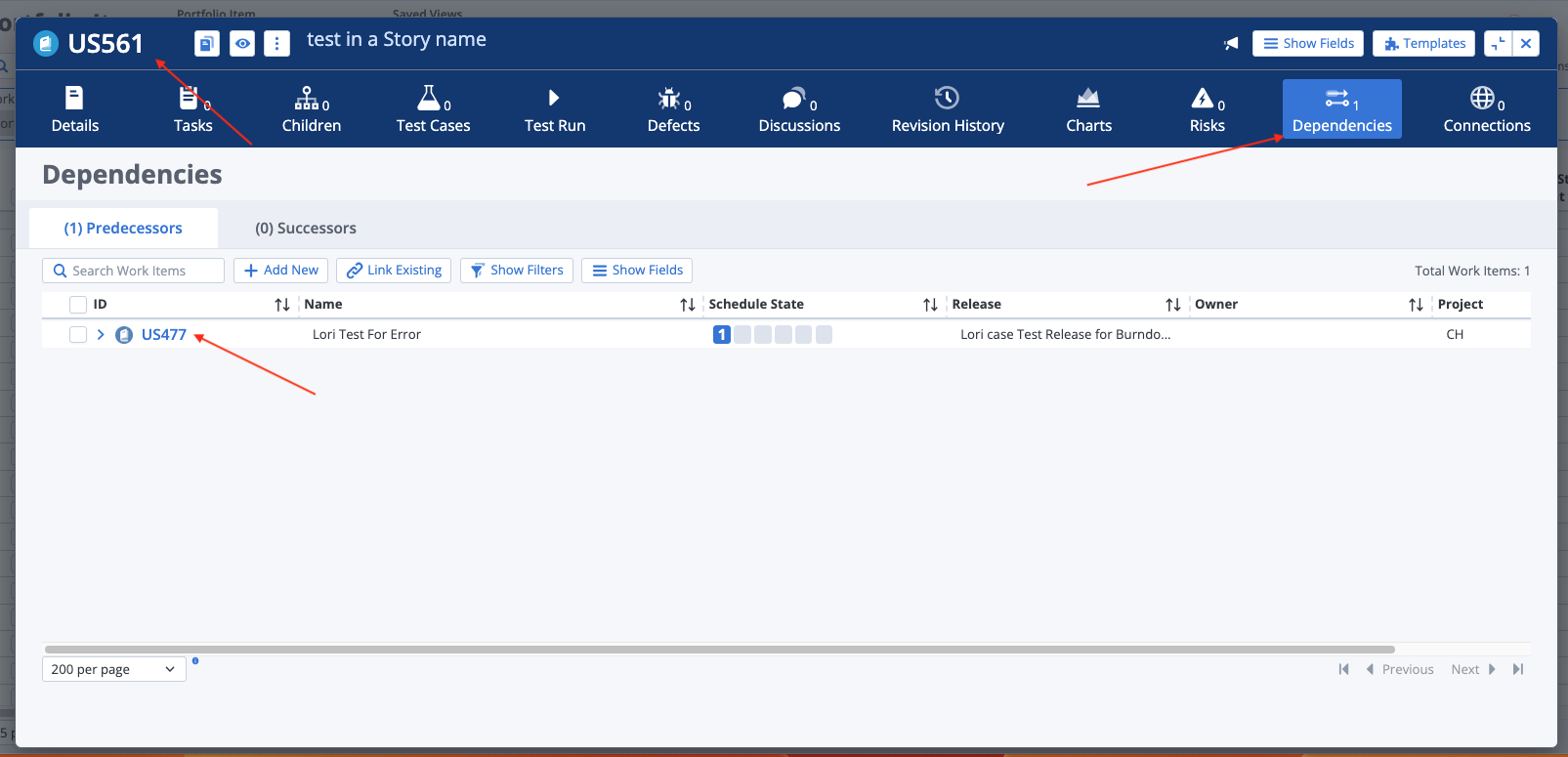 Release Dependencies core application is not displaying successors and predecessors correctly