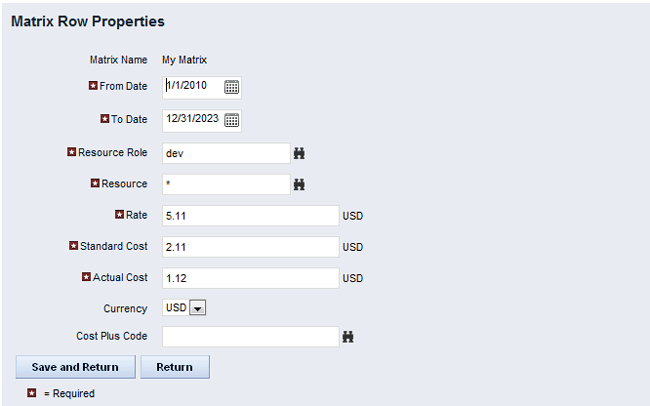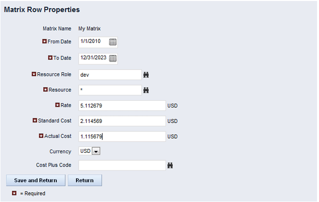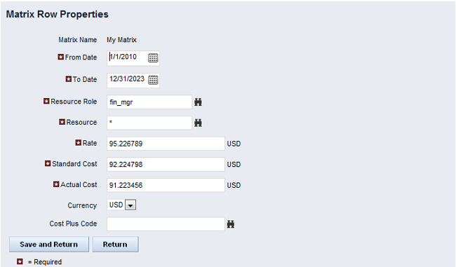 IMPORTANT NOTE: If the user clicks the 'Save and Return' button on the Matrix Row Properties page, with the values displayed with the precision of 2 decimals, the values are updated in the table. Therefore, if you want to use and see values that have more than two decimal numbers, change the option to 'Unchecked' as described below.