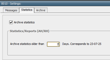 For example, the archive is archiving Statistics/Reports (AH/RH) older than 7 Days.