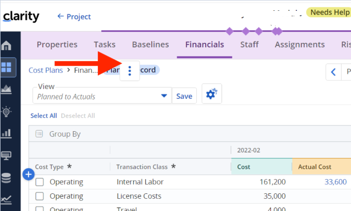 Actions Button in Clarity Cost Plans are misaligned when window is resized or when viewed in higher zoom levels