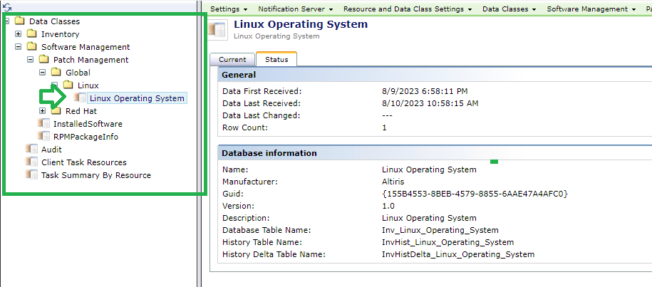 Missing data class for Linux server