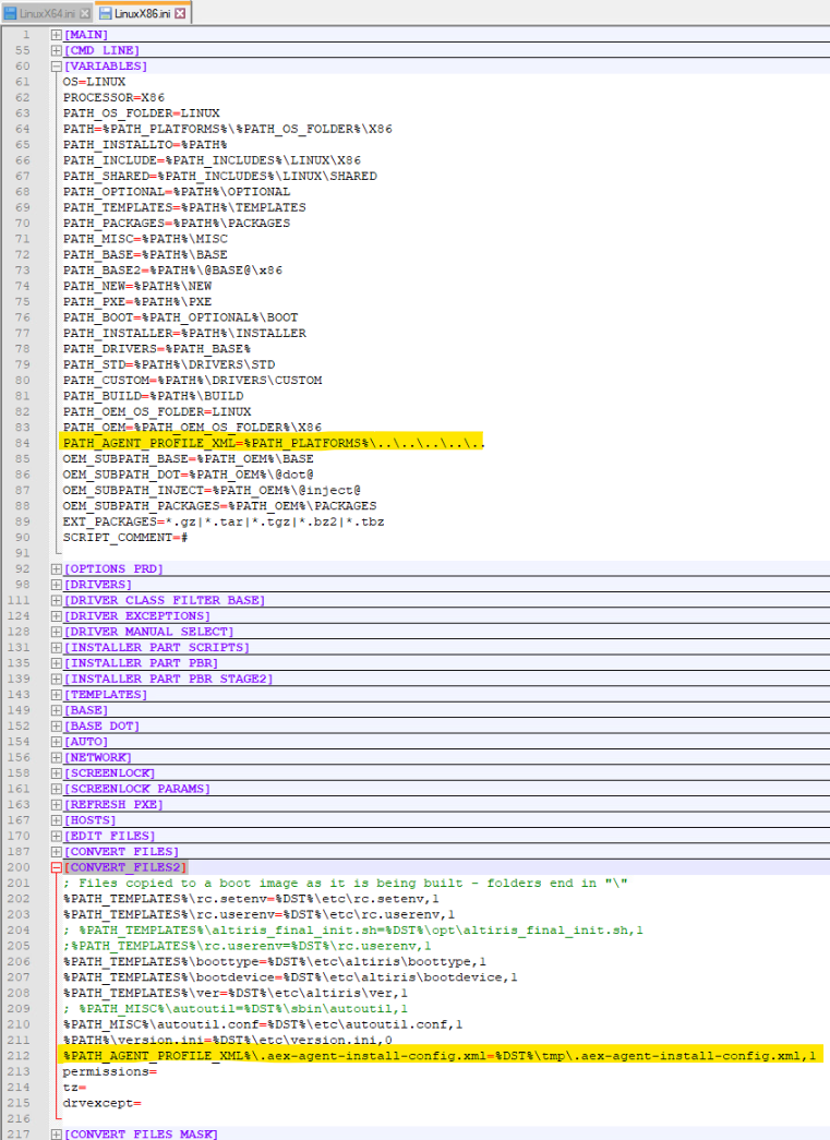 Add 'PATH_AGENT_PROFILE_XML=%PATH_PLATFORMS%\..\..\..\..\..' into section '[VARIABLES]', then add '%PATH_AGENT_PROFILE_XML%\.aex-agent-install-config.xml=%DST%\tmp\.aex-agent-install-config.xml,1' into section '[CONVERT_FILES2]'
