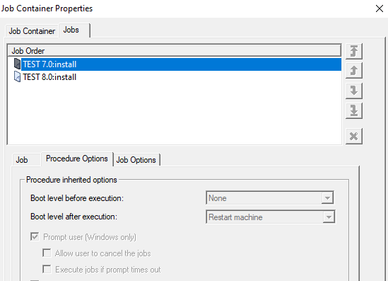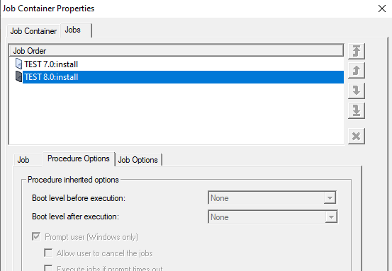- A job container with 2 jobs are sent to a computer. Both jobs have option "Prompt User" checked.
